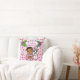 Coral rose mignon personnalisé Hispanique ou afro-américaine Fée avec cheveux courts et bouclés noirs et bonbons Sprinkles et fleurs jettent l'oreiller pour la chambre d'une petite fille.
