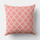 Le coussin carré moderne avec accent présente un élégant motif marocain en quatrefoil dans les couleurs corail orange / rose et blanc. Notez que la couleur arrière - plan peut être modifiée pour correspondre à votre décor maison.