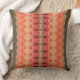 Coussin moderne et design avec rose, corail et pêche, vert olive profond. Décor intérieur soigné.