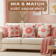 This hand‑drawn throw pillow is covered with large coral pink flowers with sunny yellow centers, surrounded by bold orange and yellow geometric accents on a cream background. The repeating pattern creates a vibrant retro style with a mid‑century modern twist. It’s a colorful accent piece for your sofa, bed, or reading nook.