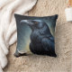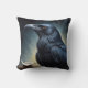Oreiller à lancer corbeau noir. © Dark Heart Desires. Un oreiller à jeter avec un corbeau noir sur une branche avec du papier qui dit Nevermore.