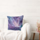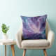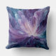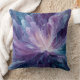 This throw pillow features a swirling violet and indigo bloom with pearlescent whites, fluid petals radiating from a luminous center - an abstract cosmic flower symbolizing creation.