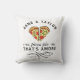 Personnalisez ce coussin amusant avec les noms de vous et de votre conjoint. Design propose deux tranches de pizza délicieuse au fromage, pepperoni, poivrons et champignons et les mots "pizza pie That's Amore". Parfait pour un couple amateur de pizza !