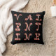 Un oreiller noir accrocheur avec le mot "Valentine" divisé sur trois lignes en lettres ondulées. La typographie élégante et ornée aura certainement un impact, avec son look romantique moderne et remarquable. L'envers du coussin est noir.