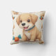 C'est un coussin en coussin avec un mignon chiot tiré dessus. Il sourit avec un jouet devant lui. Nous espérons que vous en apprécierez. Merci.