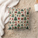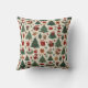 C'est un coussin coussin avec un motif de Noël. Il y a Père Noël courant parmi divers arbres de Noël et des boîtes cadeaux.