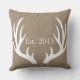 Les andouillers blancs élégants de cerfs communs avec le texte blanc de monogramme et une toile de jute de faux regardent l'arrière - plan !