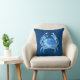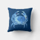 Jeter l'oreiller dans une mer vintage illustration d'un crabe, numériquement rehaussé et coloré dans les tons bleu et blanc, contre un profond arrière - plan bleu indigo