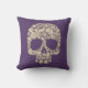 Un oreiller à jetons décoratif pour canapé ou literie avec un crâne à sucre violet et ivoire des deux côtés. On peut voir ici d'autres oreillers à jetons décoratifs violets :