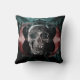 Crâne Gothique floral turquoise noir texture rouge grunge salon jeter oreiller. Déplaisant, mal, effrayant, design Halloween éffrayant. Copyright de l'image Marg Seregelyi Photography.