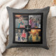 Coussin avec un collage de photos de famille moderne sur un motif en faux burlap gris foncé. Ajoutez vos photos personnelles et ajoutez votre monogramme et votre nom.