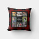 Coussin de vacances avec personnage noir moderne Collage photo de famille sur motif en plaid de buffle rouge et noir.