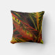 Cet oreiller de lancer coloré présente un motif abstrait moderne de feuilles de croton tropical en rouge, orange, jaune, vert, marron et noir. La plante de croton est célèbre pour son feuillage brillamment coloré qui vient dans un arc-en-ciel de couleurs. Il est utilisé pour l'aménagement paysager dans les climats tropicaux et est cultivé comme une plante domestique où il est glacière. Le dessin est répété sur le dos.