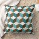 Illusion optique de formes créant le motif de cubes en teals, marron, crème et blanc.
