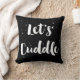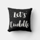 Cuddle ! Coussin noir et blanc avec script de calligraphie de pinceau blanc avec éclaboussures de peinture. L'accent moderne parfait pour tout espace de vie.