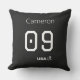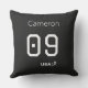Add a sophisticated touch to your home decor with this professional throw pillow featuring a high-contrast black and white "Team USA" design. This decorative accent piece is perfect for game rooms, bedrooms, or modern living areas, offering both plush support and a sleek aesthetic for dedicated fans. The striking monochromatic face is fully personalizable with your custom name and jersey number in a modern, clean font. Complete with a sharp white soccer silhouette and spirited "USA!" typography, it is a functional and stylish gift for any athlete or supporter.