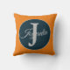 Modern custom orange Light greay ocean blue Monogram throw pillow
