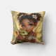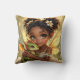 An adorable African-American anime fairy holding her chibi baby dragon throw pillow.