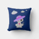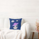 Jetez l'oreiller avec le chat mignon et les soucoupes volantes seulement sur le côté avant sur l'arrière - plan bleu royal.