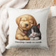 Célébrez la Journée Mondiale de l'Amitié (30 juillet) ou des amis à n'importe quel jour avec cet oreiller de lancer, qui présente une image générée par l'IA d'un chiot et d'un chaton en câlins. Personnalisez avec votre phrase ou mème favori, ou utilisez-le tel quel. Reverse affiche un design identique. Design © W.H. Sim. Voir plus sur zazzle.com/word2art