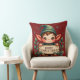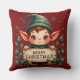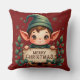 Coussin Cute Christmas Elf Holding Merry Sign Red