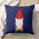 Gnome mignonne habillé en vert et rouge sur Coussin bleu marine.