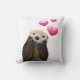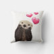 Un coussin avec l'image d'une loutre mignonne avec des coeurs flottant vers le haut. Les coeurs sont roses et somptueux avec une brillante réflexion.Cette loutre est très adorable avec ses pattes reposant sous son petit menton furieux. Sa fourrure a l'air mouillée depuis qu'il est dans l'eau.