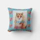 Cute Red Fox Animal Turquoise Rose Roses Cushion, avec un nom entièrement personnalisable. Un design floral aquarelle glorieux. Conçu à partir de mes aquarelles originales, que j'ai peint dans mon jardin fleuri.