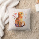 Coussin avec une adorable illustration aquarelle. Un chat tabby orange qui a l'air amical et heureux de voir les coeurs tourbillonner autour.
