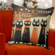 Pillow featuring a torn painting of funny cats in a row waiting for the miracles to materialize. The background shows rustic wood, and can be customized if you prefer. You can also replace the cat images both on front and back. A whimsical unique Christmas or Catmas pillow for a cat lover.
