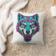 Coussin Cyberpunk Neon Wolf - Synthwave Robotic Animal