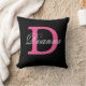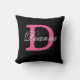 D monogramme chevron rose chaud avec nom sur coussin de design noir pour une chambre, salon ou salle de jeux. Customisez cet oreiller unique à lancer avec un nom de personne en faisant un grand cadeau de diplôme pour cet étudiant qui se dirige vers le collège ou l'université. Un enfant adorerait son propre coussin monogrammé pour sa chambre ou sa salle de jeux.