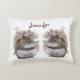 Customisez ou retirez facilement le texte sur ce coussin d'accent qui comporte deux adorables écureuils rouges tous blancs et bruns moelleux debout dans la neige. Que peuvent-ils dire ? L'image est répétée à l'arrière.