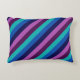 Un coussin d'accent avec un design motif coloré de bandes diagonales en turquoise cool, bleu océan, bleu marine, violet prune et lavande.