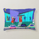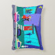 Ce Coussin rétro Holiday Cartoon Party Christmas Accent vous mettra dans l'esprit des vacances. Le design présente l'extérieur d'une maison moderne du milieu du siècle. A travers les murs en verre turquoise du sol au plafond, on peut voir les silhouettes bleu marine des fêtards. Un couple bavarde devant un sapin de Noël vert, décoré d'ornements turquoises. De l'autre côté de la pièce, on peut voir un homme dansant et l'homme à long souffle que tout le monde essaie d'éviter. L'extérieur de la maison comporte une porte rouge gaie avec une couronne de vacances, une cheminée en brique violette surdimensionnée et des brins de lumières de Noël colorées. Une passerelle grise coupe une bande de sable jusqu'à la porte d'entrée, à travers l'herbe turquoise. La scène nocturne a un ciel bleu foncé avec une lune jaune croissant. Le bonhomme de neige en plastique décorant la cour avant est accueilli par les premières flocons de neige de la saison. Un couple attirant fait le cha-cha-cha-cha sur le chemin de leur voiture. La femme blonde porte une robe rouge vif. Elle tient une pointe de méli-mélo d'une main. Sa belle escorte porte un costume noir et une cravate rouge. Ses mains sont enveloppées autour de la taille de la femme. Dans la rue, devant la maison, nous pouvons voir trois voitures classiques aux couleurs vives. Le côté opposé du coussin est d'un bleu profond. Il y a beaucoup de place pour personnaliser, si vous le souhaitez. Commandez aujourd'hui et fêtez comme en 1959 !
