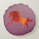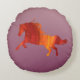 Cheval rouge sur un coussin rond.