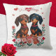 Coussin Dachshunds Coeurs Fleurs Chiens Saint Valentin