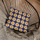 Décorez votre maison ou patio extérieur avec cet oreiller de carré qui projette l'image d'une fleur Dahlia jaune sur un arrière - plan bleu marine et imprimé dans un motif extensible. Un design floral et amusant ! Sélectionnez votre taille de coussin et votre style de tissu.