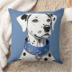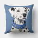 Un dalmatien illustré numériquement avec des taches noires, portant un collier bleu élégant, affiché sur un fond bleu assorti. Représentation élégante et artistique d'une race de chien populaire.