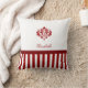 Coussin Damas rouge et blanc classique avec stries et nom