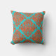 Coussin Damassé d'orange et de turquoise