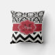 Montrez votre style d'une manière d'amusement avec ceci noir et blanc avec le chevron rouge d'accent et le coussin personnalisé par damassé.