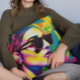Coussin Dame colorée unique en lunettes de soleil Art