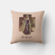 Magnifique coussin beige décoré d'une jolie demoiselle médiévale. Ajoutez votre nom pour personnaliser.