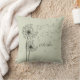 Dandelion graphique inspirant "Vœu" sur un coussin vert poussiéreux.