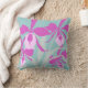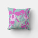 Coussin florale audacieuse dans les tons violets sur un arrière - plan turquoise aqua. Impression graphique originale d'une orchidée sympodiale stylisée Cattleya par Sarah Trett. Très bien situé dans une chambre ou une chambre d'été.
