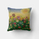 Abstrait coussin de champ Poppy. Lumineux, aéré, lumineux et gai. Les pavots Abstraits dans le champ d'été est lumineux et amusant. Beau champ abstrait de fleurs. Des tons clairs et doux de fleurs rouges, roses, bleues et jaunes ondulent dans un champ par une chaude journée d'été brumeuse. Soleil jaune dans un ciel bleu pâle. Photographie de la peinture originale "Abstrait champ de pavot au soleil".