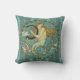 L'image pour ce coussin est un collage numérique comportant le détail de sirène du plancher de mosaïque glorieux d'or par la grue de Walter, créée en 1881. Ce détail circulaire de mosaïque est placé sur une image d'un détail d'un mur de cascade de mosaïque d'échelle de sirène de turquoise.