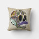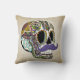 Illustration tirée par la main d'encre d'un jour du crâne mort de sucre folâtrant une moustache chic ! Ajoutez le texte pour personnaliser et vous avez un coussin impressionnant ! C'est la couleur/version vintage - il y a également des versions d'arrière - plan de couleur, ainsi un contrôle toutes les conceptions disponibles et des produits noirs et blancs et personnalisables !