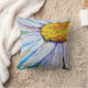 On aime ce coussin aux détails serrés d'une marguerite peinte aux couleurs vives, jaune, orange, violet, bleu et vert. Le centre de la marguerite a été peint sur toile avec des graines de moutarde (voir Matt. 17:20 : "...avec la foi aussi petite qu'une graine de moutarde...Rien ne sera impossible pour vous") de donner de l'espoir à tous ceux qui l'admirent.